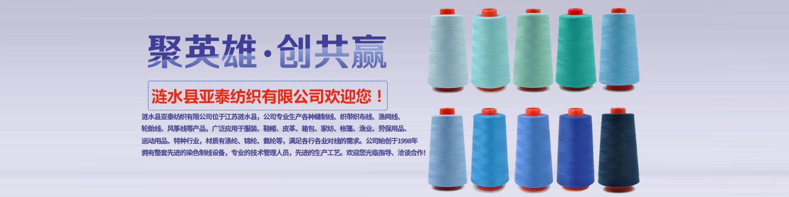 漣水縣亞泰紡織有限公司位于江蘇漣水縣,公司專業(yè)生產各種縫制線、織帶織布線、漁網線、輪胎線、風箏線等產品,廣泛應用于服裝、鞋帽、皮革、箱包、家紡、帳篷、漁業(yè)、勞保用品、運動用品、特種行業(yè),材質有滌綸、錦綸、氨綸等,滿足各行各業(yè)對線的需求。公司始創(chuàng)于1998年,擁有整套先進的染色制線設備,專業(yè)的技術管理人員,先進的生產工藝。歡迎您光臨指導、洽談合作!
